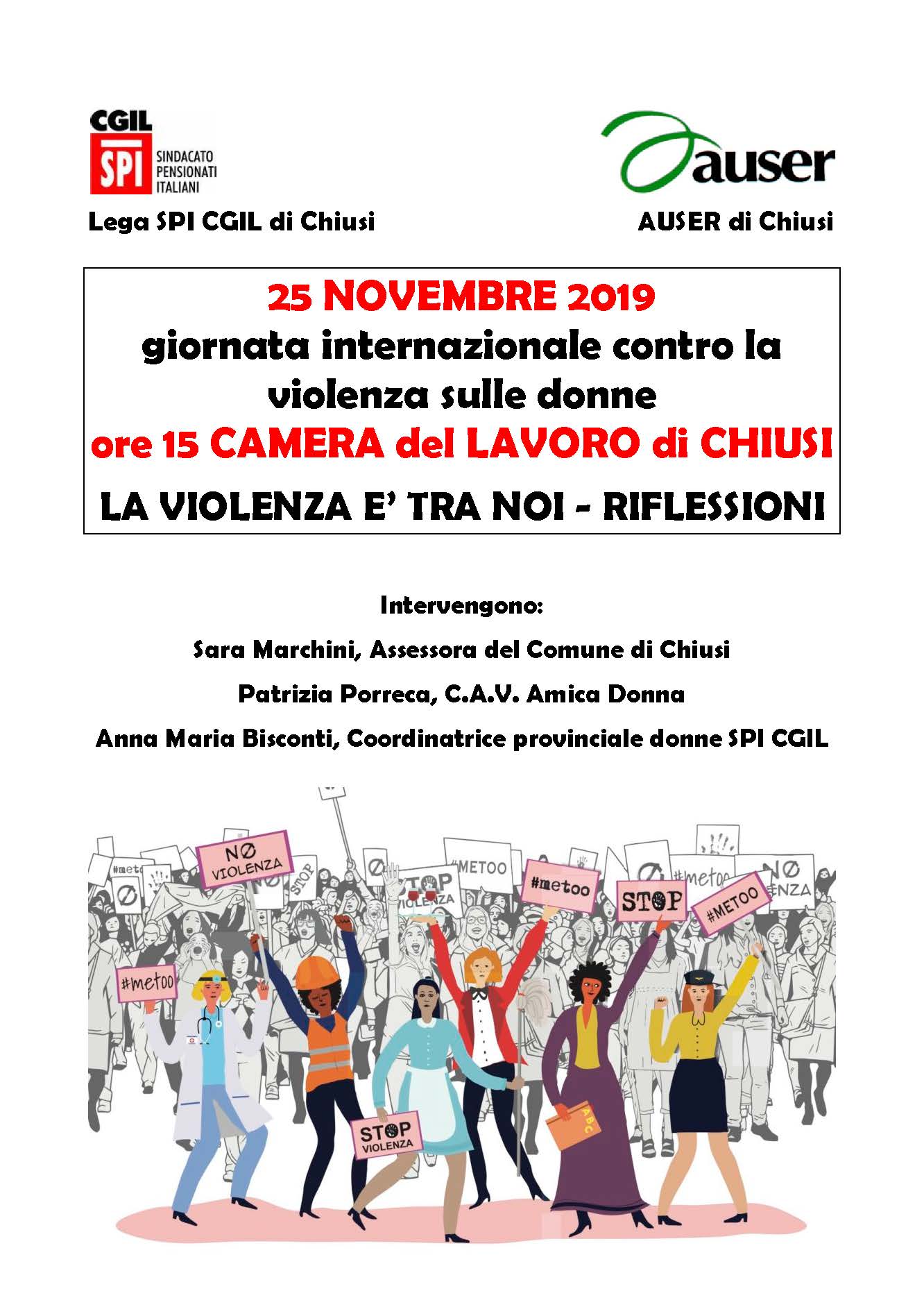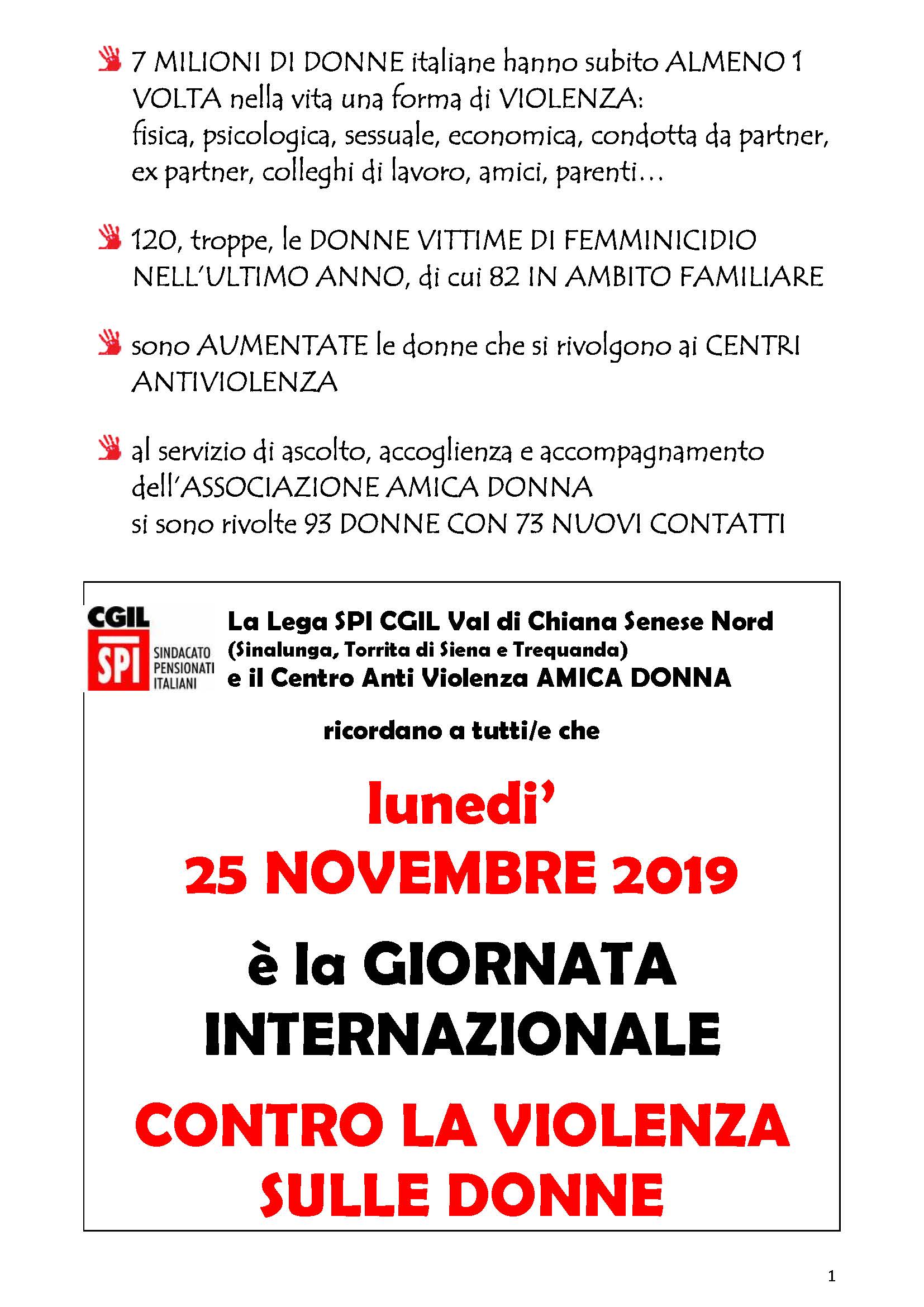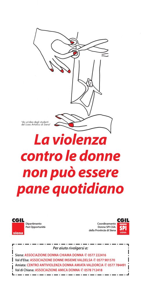 25 NOVEMBRE GIORNATA CONTRO LA VIOLENZA SULLE DONNE – INIZIATIVE SPI CGIL SIENA
